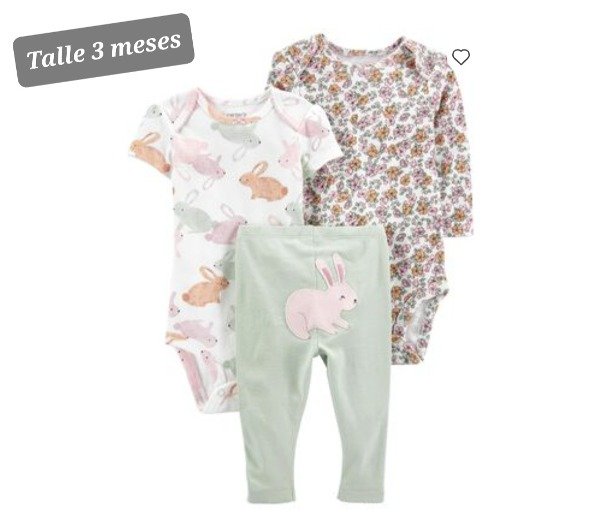 Trio Carters 2 body pantalon 3 meses conejo